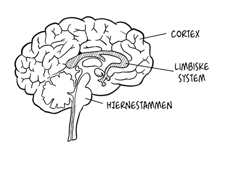 Udenpå ligger den nyere neocortex hjerne, som kan reflektere, tænke og skabe overblik – men den er langsom. Den kræver meget energi og koncentration, så den virker kun, når frygtsystemet er i ro.